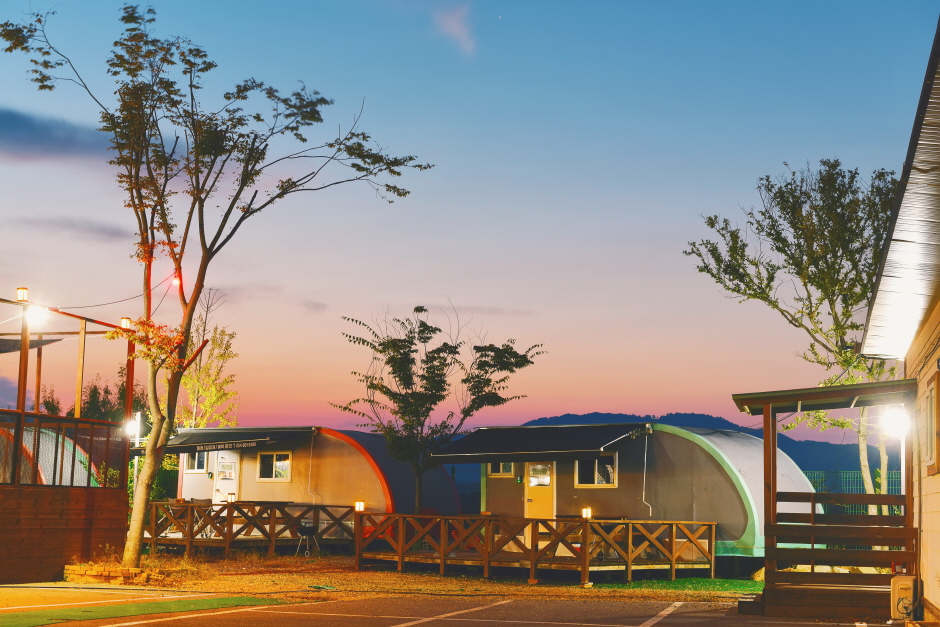 - 내용 : 전기,무선인터넷,장작판매,온수,트램폴린,물놀이장,놀이터,마트, 편의점,카페, 식당, 바베큐