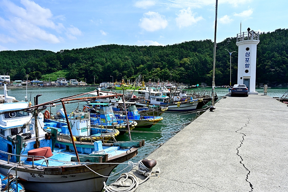 삼포항은 경상남도 창원시 진해구 웅천동에 있는 작은 항구이다. ‘삼포 가는 길’이란 대중가요로 더 많이 알려진 항구로 삼포항 진입로에는 노래비가 있다. 노래비 앞 버튼을 누르면 노래 한 곡을 감상할 수 있다. 진해 삼포 방파제는 100m도 안 되는 길이로 끝자락에는 그리 크지 않은 아담한 삼포항 방파제 등대가 자리하고 있다. 방파제 너머 우도와 음지도가 파도를 막아주어 태풍과 비바람이 불어도 피해가 적고, 잔잔한 항구이다. 방파제 가는 길에는 작은 어선들이 정박해 있고 벽면에는 그림 벽화가 그려져 있어 볼거리가 있다. 조용하게 바다를 볼 수 있는 진해 삼포 방파제는 갑오징어, 감성돔, 붕장어 등 낚시 포인트로도 알려져 있다.