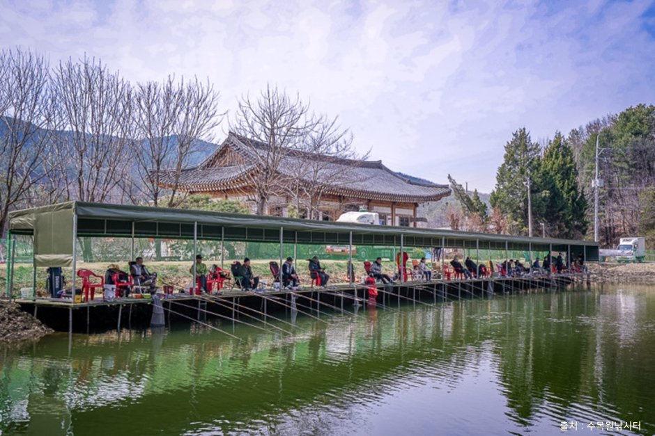 총 2개의 호지로 구분되어 있으며 다양한 어종의 물고기를 대량 방류한다. 이곳은 특히 구렁이 장어 낚시로 널리 알려져 있는데 겨울엔 대왕 랍스터, 여름엔 구렁이 장어 등의 이색 어종으로 연중 문전성시를 이룬다.