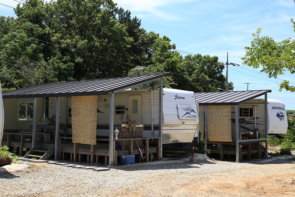 교통아일랜드는 인천 강화도에서 한 번 더 다리를 건너 들어가는 교동도에 위치한 카라반 캠핑장이다. 쉽게 접하기 어려운 미국 전통 카라반 모델들인 시에라, 쿠거, 에어스트림, 원더러, 알르마스케이가 종류별로 준비되어 있다. 카라반 연식은 있지만, 청결하게 관리되고 있고, 독특한 외관과 내부 구조 종종 드라마 촬영이 이뤄지기도 한다. 주변은 울창한 숲과 산책로로 꾸며져 있고, 단 5개의 카라반이 있어 프라이빗한 느낌으로 한적하게 캠핑을 즐길 수 있다. 아이들과 방문하기에는 놀거리가 다소 부족하지만, 농촌체험 등의 프로그램을 별도로 운영하고 있어 예약 시 문의하면 참가할 수 있다.