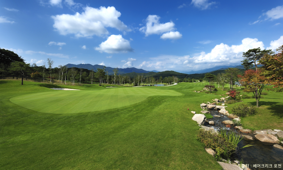 베어크리크 포천은 골프 다이제스트로부터 우리나라 10대 명문 골프장에 선정된 명문 골프장이다. 웅장한 느낌의 운악산의 경관과 조화를 이루어 자연과 동화된 골프장이다. 36홀 코스가 모든 수준의 골퍼들이 즐길 수 있도록 다양한 난이도를 갖추고 있다. 클럽하우스는 단층 건물에 박공지붕이 넓게 펼쳐져 있으며 대지에 안착한 형태이다. 산악지형 코스임에도 모든 홀이 그린이 보이도록 설계되어 있다. 베어 코스는 넓고 긴 페어웨이와 장쾌한 스타일의 도전적인 코스이며 크리크 코스는 조경과 양잔디의 조화가 어우러져 멋진 경관을 연출해 준다. 베어 코스에 비하여 전략적 접근이 필요하다.