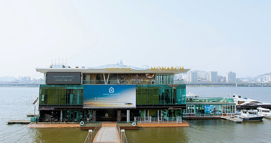 잠원한강공원에 있어 한강뷰와 더불어 만남과 식사를 할 수 있는 로맨틱한 곳이다. 1층은 카페 겸 바, 2층은 레스토랑, 3층은 브런치와 펍을 판매하고 있으며, 야외 테라스가 있어서 한강뷰를 바라보며 데이트를 즐기기에 좋은 장소로 인기다. 요트 운항과 음료, 다과를 함께 이용할 수 있게 구성한 상품도 이용할 수 있다. 스테이크, 피자, 파스타, 와인을 판매하고 있으며, 하우스웨딩, 돌잔치, 상견례, 기업 행사 장소로 이용되고 있다.