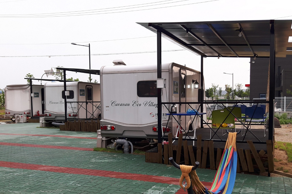 캠핑하우스는 충남 천안시 동남구에 자리 잡고 있다. 천안시청을 기점으로 자동차를 타고 시청로, 불당대로, 중부로, 용곡1길을 지나 20분이면 도착한다. 도심 속에 위치한 캠핑장이지만, 도시의 번잡함은 느낄 수 없다. 마치 숲속에 있는 듯한 착각이 든다. 캠핑장에는 카라반 5대를 마련했다. 객실 내부에 침대, TV, 냉장고, 소파, 식기류, 취사도구, 개수대, 화장실, 샤워장 등이 있어 편리하다. 외부 전용 데크에는 그늘을 만들어 주는 어닝 아래 바비큐 시설을 설치했다. 이곳은 하루를 묵지 않고, 잠깐 캠핑의 분위기를 즐기다 갈 수도 있다. 외부음식과 주류 반입을 허용하기 때문에 먹을거리만 사가면 된다. 또한, 캠핑장에서 준비한 음식과 주류를 구입하면 훨씬 더 편하게 캠핑을 만끽할 수 있다.