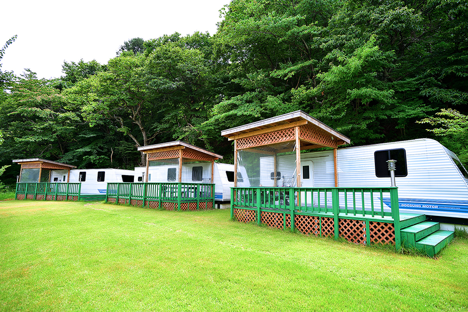 그날 카라반은 무주계곡이 내려다보이는 산자락에 위치한 곳으로 펜션과 함께 운영되고 있다. 캠핑장은 16,000㎡의 부지에 카라반 7대와 펜션 6동으로 이루어져 있다. 카라반을 비롯한 객실마다 단독 바비큐 장비가 마련되어 있어 편하게 이용할 수 있다. 바비큐장에는 어닝이 설치돼 있어 우천 시에도 이용에 지장이 없다. 숯과 그릴은 유료로 대여 가능하며 인원수에 따라 요금이 다르다. 카라반 내부도 넓은 편인데 특히 대형 사이즈의 침대를 구비해 놓아 편안한 잠자리를 제공한다. 화장실은 깔끔하고 온수가 잘 나오며 샴푸, 린스, 비누 등 욕실용품이 비치되어 있다. 주방에도 취사도구와 주방용품이 완비되어 있다. 카라반 앞에는 잘 정돈된 잔디밭이 펼쳐져 있어 어린아이들이 뛰어놀기에도 좋다. 한적한 여유가 지루하다면 주변관광지로 가보자. 머루와인동굴, 반디랜드, 태권도원전망대, 덕유산, 적상산, 칠연 폭포, 용추폭포 등이 인근에 있다.