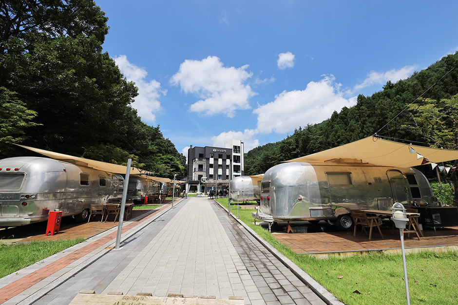 담양읍내에서 백양사 가는 길로 7km가량 이동하다 보면 월곡마을회관 앞 오르막길 옆으로 선인장유스호스텔 이정표가 나온다. 이 길을 따라가면 선인장유스호스텔과 카라반 야영장이 있다. 카라반 사이트는 9면이 마련되어있다. 카라반은 호스텔 앞마당에 널찍한 간격을 두고 두 줄로 나란히 서 있다. 이곳 카라반은 명품 에어스트림으로 빈티지한 분위기가 낭만적이다. 캠핑장 한쪽에 낮에는 카페로, 밤에는 노천 레스토랑으로 바뀌는 노르디스크 텐트도 있고, 실내포차 느낌의 공용바비큐장도 마련되어 있다. 캠핑장과 유스호스텔 옆 산에는 편백 숲이 있다. 편백 사이로 오솔길도 있고 곳곳에 의자와 해먹을 설치해 쉴 수 있는 공간도 마련해 놓았다.