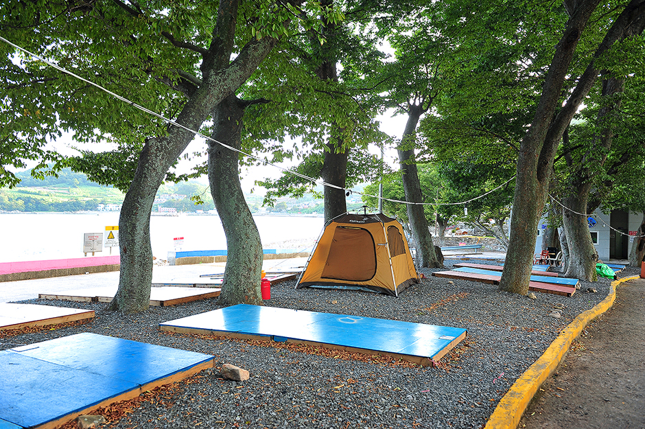 천하마을 야영장은 아담하고 조용한 바닷가에 위치하고 있으며, 무성하고 오래된 나무들이 주는 자연 그늘이 많아 타프를 치지 않아도 되는 캠핑장이다. 규모는 작지만 사이트의 공간이 여유로워 텐트를 편안하게 설치할 수 있고 텐트 바로 옆으로 주차를 할 수 있어 무거운 장비를 옮기는 수고를 덜어주어 좋다. 천하마을 야영장은 7개의 사이트로 되어 있으며, 사이트 비용은 성수기에는 3만 원, 비수기에는 2만 원으로 저렴하게 이용할 수 있다. 캠핑장에서 바다까지는 약 10m 이내 거리로 물놀이하기에 좋고, 경치도 훌륭하다. 캠핑장 내 화장실 개수대 샤워장 등 편의시설이 최신 시설로 관리되고 있어 사용하기 좋다. 캠핑장 뒤편으로는 산책로가 있어 천천히 오르다 보면 계곡을 만날 수 있다. 계곡과 바다를 함께 누를 수 있어 캠퍼들이 선호하는 곳이다.