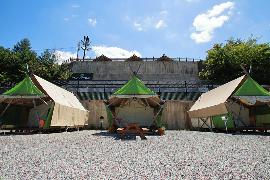 더 프라우드 리조트 캠핑장은 충북 제천시 백운면에 있다. 제천시청을 기점으로 26㎞가량 떨어졌으며, 자동차로 내토로, 북부로, 구락산로를 차례로 거치면 닿는다. 도착까지 소요 시간은 30분 안팎이다. 캠핑장은 카라반 15대와 글램핑 22개 동이 있다. 카라반 내부에는 침대, 냉난방기, TV, 냉장고, 취사도구, 조리도구, 개수대, 화장실, 샤워장이 있다. 외부 전용 데크에는 바비큐 시설이 있다. 글램핑은 커피숍을 중심으로 2개 구역에 걸쳐 조성했다. 글램핑 내부 시설은 카라반과 대동소이하며, 차이점이라면 화장실과 샤워장이 내부에 없다는 것이다. 카라반의 경우는 반려견을 동반할 수 없고 글램핑장은 소형견만 동반 입실이 가능하다. 투숙객들이 이용할 수 있는 야외수영장과 반려견들을 위한 펫 수영장이 있다. 또한 멀티 코트, 암벽 등반 시설 등 다양한 놀이 시설이 있다. 사계절 내내 운영하며, 예약은 온라인 실시간으로 가능하다.