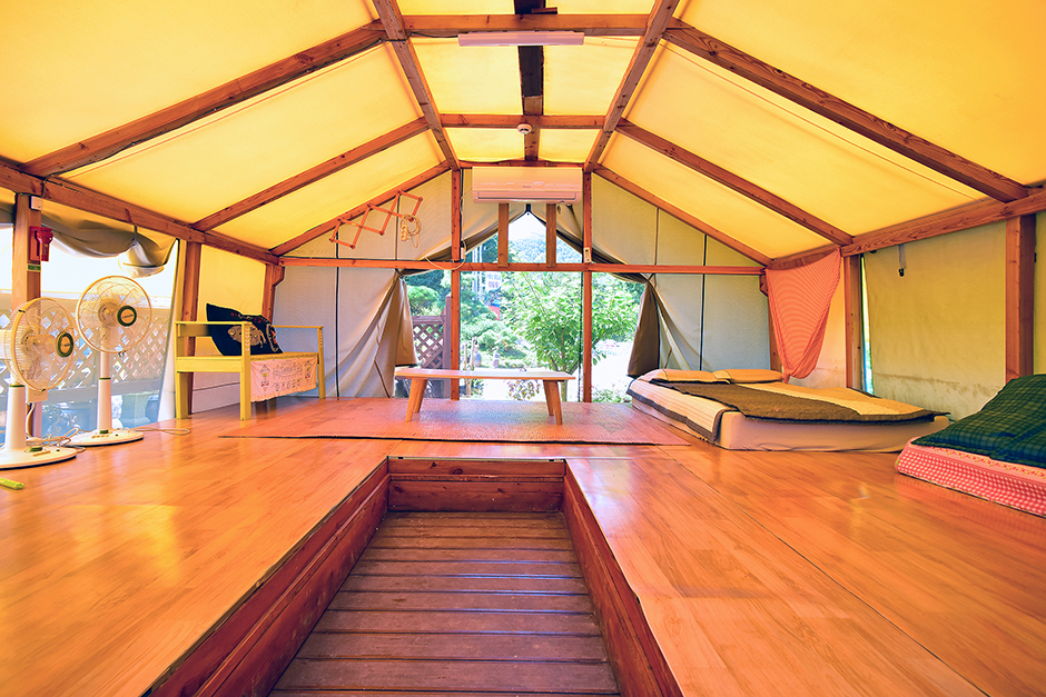 이곳은 규모가 큰 캠핑장은 아니지만 아담하고 한적한 캠핑을 즐길 수 있다. 여기저기 아기자기한 화초들이 가꿔져 있어 정원을 구경하는 재미가 있다. 캠핑 시설은 글램핑 4동과 9개의 사이트로 이루어져 있다. 캠핑장 사이트 앞에 그늘막을 칠 수 있고 사이트 사이마다 나무 테이블이 있어 개별 바비큐 파티를 즐기기에 좋다. 글램핑은 청결한 침구류와 다양한 식기류 등 쾌적한 캠핑을 위한 준비가 되어 있으며 공동 화장실, 샤워장 시설도 갖춰져 있다. 샤워장 온수는 밤 11시까지 이용할 수 있다.