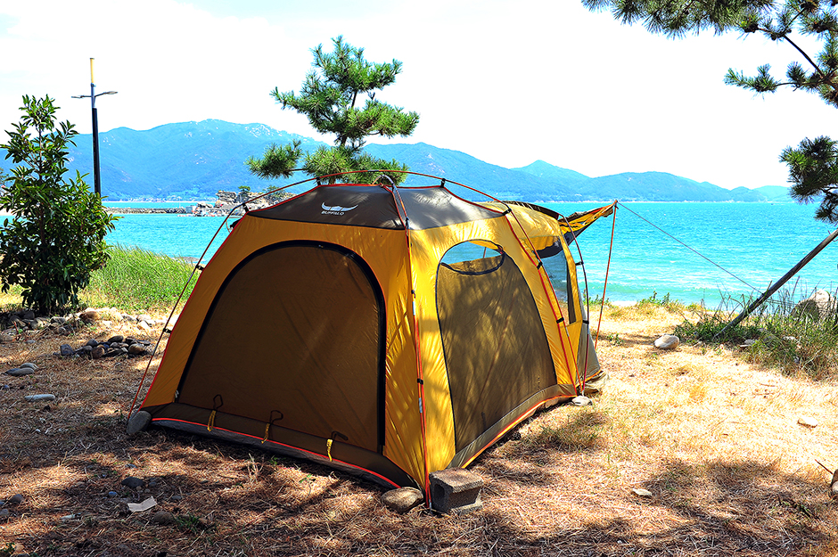 두곡해수욕장 좌측에 있는 꼭두방 해변은 경치도 일품이고 곳곳에서 갯바위 낚시도 할 수 있다. 캠핑장 입구로 들어서서 화장실 건물을 끼고 좌회전을 하면 주차장이 나온다. 송림과 맞닿아 있는 주차장은 항상 인기 구역이다. 바로 뒤가 송림야영장이다 보니 짐을 옮기지 않아도 되는 편리함 때문이다.
