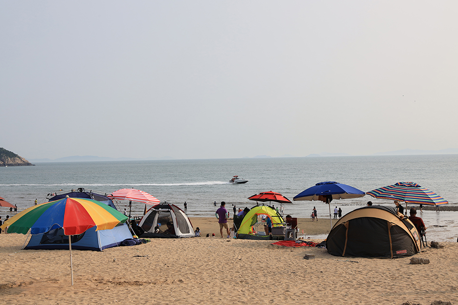 식당가를 지나 해변 앞에 카라반과 글램핑 텐트가 나란히 서 있다. 오가는 길이 다소 복잡한 것이 흠이지만, 수도권에서 가깝고 바다와 근접해 있어 많은 이들이 찾는다.