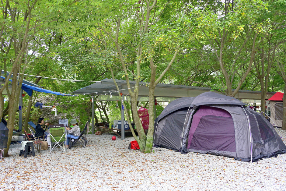 부귀 산장 펜션 뒤편에 위치한 숲속 캠핑장은 나무 그늘 아래 자리 잡은 평상 위에 텐트를 칠 수 있고 지붕이 있어서 비가 오나 눈이 오나 편안하게 즐길 수 있다. 여름엔 부귀계곡에서 물놀이를 할 수 있고 물고기도 잡을 수 있어 온 가족이 함께 여름휴가를 즐기기에 최적의 장소이다. 온돌방, 개별 바비큐, 오토캠핑, 방갈로도 이용할 수 있으며 와이파이가 제공되기에 밤새 텐트에서 영화나 드라마, 음악을 즐길 수 있다. 주차장 한 편에는 족구장이 있고 편의 시설로 슈퍼, 화장실, 샤워실 등이 준비되어 있다. 전자레인지에 물놀이 할 때 필요한 튜브 바람 넣는 기계까지 있어 피서객을 배려하는 따뜻한 마음이 느껴진다. 계곡물이 폭우로 넘실대면 차량 통제가 되기 때문에 기상을 꼭 체크하고 가는 것이 좋다. 산길 따라 산책하면서 자연 속에서 힐링할 수 있다. 아무 걱정 없이 먹고 웃고 즐기다 보면 어느덧 방전됐던 에너지를 재충전할 수 있다. 장기숙박도 가능하지만 반려견 출입은 불가능하다.
