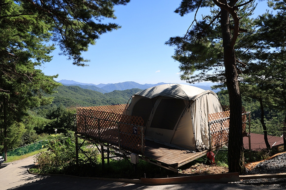 영월 주천 산자락에 위치한 조용하고 편안한 숲속 캠핑장이다. 언덕과 비포장도로로 접근이 아주 쉬운 편은 아니나 숲속 비탈길에 데크가 위치해 있어 온전히 숲속의 감성을 느낄 수 있는 캠핑장이다. 데크 옆에 주차가 가능한 곳과 불가한 곳이 있어 예약 전에 확인이 필요하다. 캠핑장 내에 매점이 없어 필요한 물품들은 사전에 준비하는 것이 좋다. 반려동물은 동반이 불가능하다.