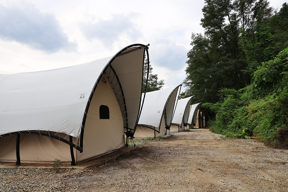 태백 구문소 힐링캠프는 강원도 중에도 오지로 꼽히는 청정지역에 위치해 있다. 특히, 우리나라에서 유일하게 산을 가로지르는 강이라 알려진 구문소 인근이라 천연기념물의 신비한 모습을 즐길 수 있다. 글램핑 전용 캠핑장 구문소 힐링캠프는 강변을 따라 계단식으로 자리 잡고 있으며 아래쪽에 11개 위쪽에 10개의 글램핑 텐트가 들어서 있다. 관리사무소와 카페가 있고 글램핑 안은 주방시설과 식기, 요리도구들이 잘 구비되어 있어 캠핑 장비 없이 와도 불편함이 없다. 화장실과 샤워실은 내부에 갖춰져 있으며 평소에도 기온이 낮은 편이라 겉옷을 준비해야 한다.