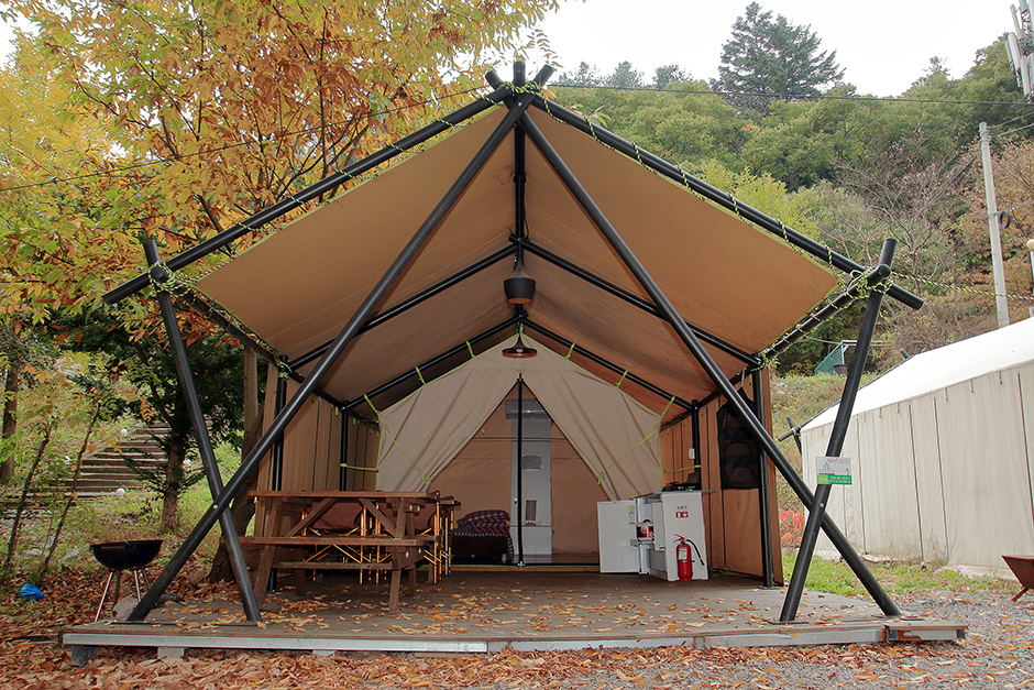 강촌관광농원은 강원도 춘천시 남면에 자리 잡고 있다. 춘천시청을 기점으로 강촌역 방향으로 30분가량 달리면 도착한다. 캠핑장에 닿기 전 약 1Km의 시골길이 나오지만, 도로 상태가 양호해 자동차 운전에 어려움이 없다. 이곳은 펜션 3개 동과 더불어 글램핑 20면이 있다. 내부에는 침대, 냉난방기, 무드 등을 비치했으며, 외부에는 냉장고, 취사도구, 테이블, 의자를 마련했다. 객실 내에 화장실, 샤워장, 개수대가 없지만, 모두 가까운 거리에 있어 불편함이 없다. 일반 슈퍼와 다름없는 매점, 포켓볼, 당구, 탁구를 즐길 수 있는 체육 시설, 대인원을 위한 바비큐장, 어린이가 좋아하는 트램펄린, 여름철 물놀이가 가능한 계곡 수영장 등 부대시설이 알차다. 캠핑장 이용객이 서바이벌 게임이나 ATV 체험을 원할 경우 할인 혜택도 주어진다.