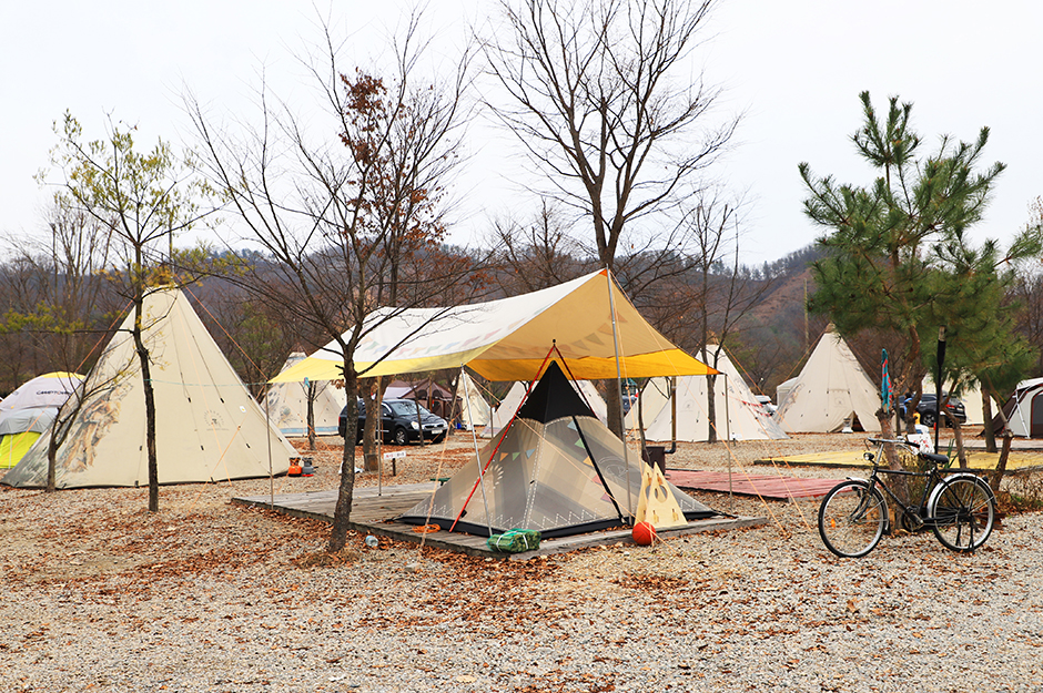 타프설치시 추가비용든다. 트램플린, 물놀이장이 마련되어 있어, 아이들이 이용할 수 있다. 탁구대와 배드민턴 네트가 마련되어 있어, 체육활동을 할 수 있다. 강촌레일바이크가 캠핑장에서 5분에서 15분 거리에 위치하고 있다.