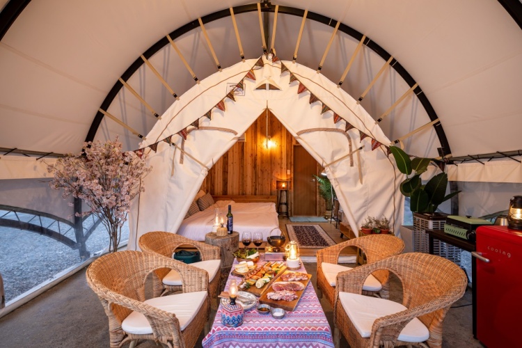 캠핑소사이어티는 경남 진주시 내동면에 자리 잡은 글램핑장이다. 글램핑 객실 내부에는 침대를 비롯해 TV, 화장실, 샤워실, 개수대, 테이블 등 일상생활이 가능할 정도의 시설이 갖추어져 있다. 부대시설로는 영유아, 유아, 성인으로 구별된 3개의 수영장이 있으며, 각종 음료와 먹을거리를 파는 카페가 마련되어 있다.