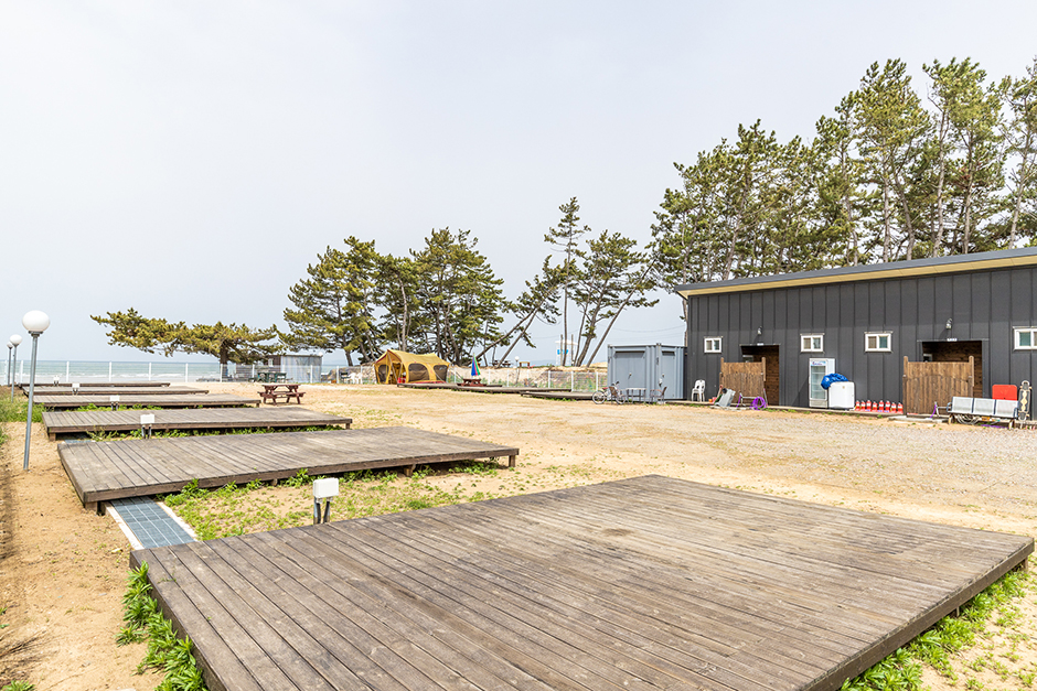 태안의 대표 관광지로 손꼽히는 청포대해수욕장 바로 앞에 위치해 있어 캠핑장에서 해변까지 열 발자국이면 족하다. 덕분에 한여름이면 물놀이 캠핑으로 인기가 많다. 어느 사이트에 머물든 서해를 마주할 수 있다.
