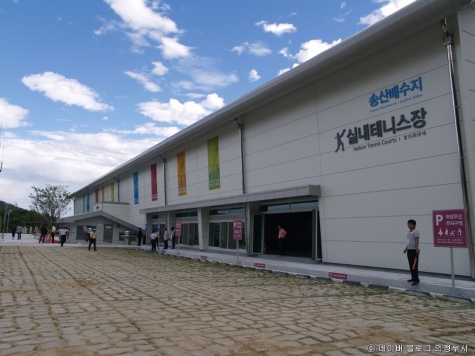 송산배수지를 확장하고 배수지 상부의 유휴공간을 활용하여 시민들이 이용가능한 체육시설을 만들었다. 체육시설은 실내테니스장 4면, 실외테니스장 2면, 풋살장 1면이 조성되어 있다. 이곳은 마을과 인접한 산책로로 이어져있고 송풍길과도 연결이 되어 일반 주민들이 방문하여 주변경치를 즐기며 쉴수 있는 정자와 생활운동시설도 마련되어 산책하기에 좋다.