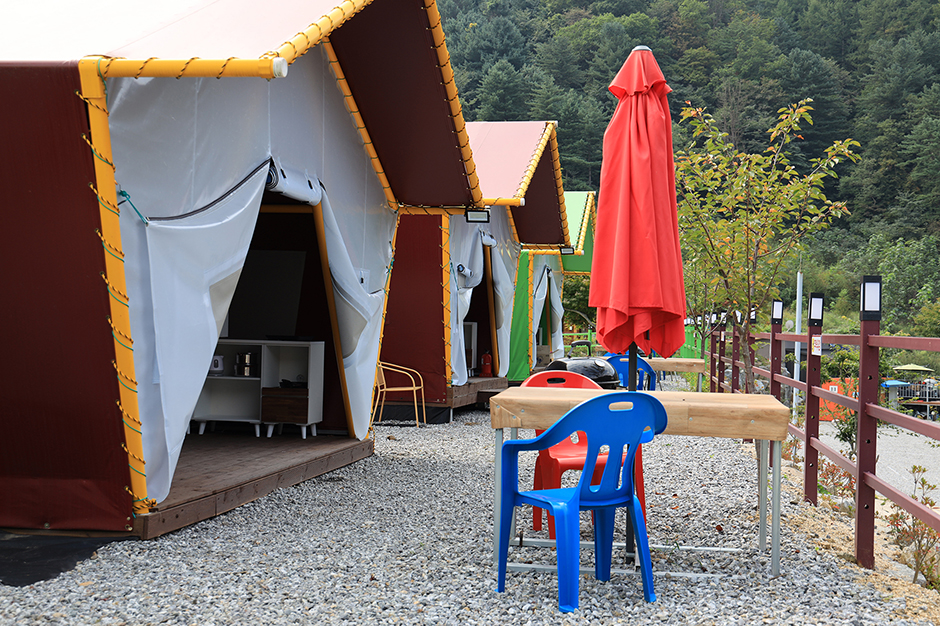 가평에 위치한 캠프스테이는 서울에서 약 1시간 30분 정도 거리. 캠핑장 내에 수영장과 트램펄린이 있어 아이들과 놀기에도 좋고, 캠핑장 아래 계곡에서 물놀이를 즐길 수도 있다. 총25개 사이트를 운영중이다.