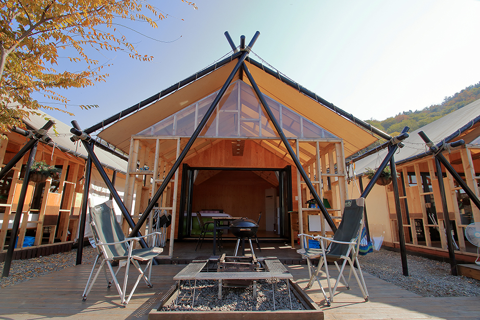 와이글램핑은 경기도 양평군 용문면에 자리하고 있다. 양평군청을 기점으로 상평교차로에서 오른쪽 방향으로 진행하며 용문터널과 조현초등학교를 거치면 되는데 도착 시간까지는 약 30분이 소요된다. 이곳은 MBC 프로그램 ‘어서와 한국은 처음이지?’에 등장해 화제가 된 곳으로 고즈넉한 시골 마을에 있는데, 산과 냇가를 배경으로 10면의 글램핑을 갖췄다. 2인 기준 4인까지 수용하는 N카바나와 4인 기준 6인까지 머물 수 있는 G카바나 두 종류인데 크기의 차이만 있을 뿐 구비 물품은 동일하다. 내부에는 침대, 냉난방기, 냉장고, TV, 취사도구, 식기류가 있으며, 외부에는 바비큐 시설을 배치했다. 화장실, 샤워장, 개수대는 없지만, 관리소 건물 쪽에 모여 있어 사용하는 데 불편함이 없다. 부대시설로는 오락실, 당구장, 농구 게임기가 있고, ATV 대여도 이뤄지고 있다.
