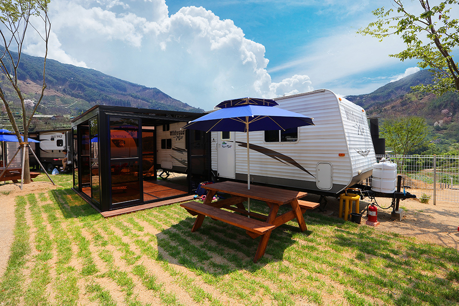 캠핑장은 자동차 야영장 4면과 카라반 12대를 갖추고 있으며 바닥 형태는 잔디다. 사이트 크기는 가로 15m 세로 8m와 가로 9m 세로 8m로 되어 있고 카라반 객실 내부는 침대, 탁자, 소파, 개수대, 가스레인지, 전자레인지, 냉장고, 화장실, 샤워장 등 일상생활에 불편이 없을 물품으로 채워져 있다.