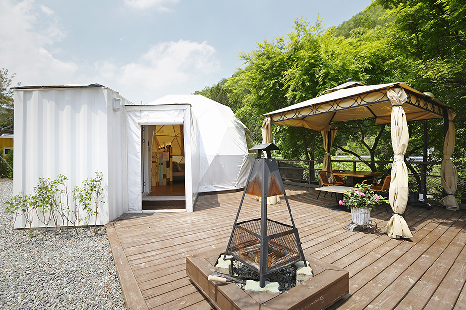 울창한 숲과 맑은 물이 흐르는 계곡을 배경으로 6가지의 다양한 글램핑 객실이 갖춰져 있다. 계곡 옆에는 이글루가 있고 오페라하우스 모양의 오페라, 카바나 VIP, 전망이 좋은 테라스하우스, 컨테이너로 만든 빈티지하루스가 있다. 모든 객실 내부에 화장실, 샤워장, 개수대를 비치돼 있고 일반 펜션과 같은 물품이 비치돼 있다. 부대시설로 계곡, 수영장, 카페가 있으며, 일반 편의 물품을 구입할 수 있는 매점도 있다.