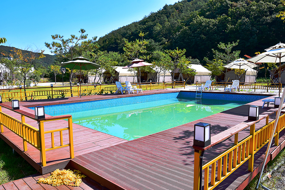- 내용 : 전기,무선인터넷,장작판매,온수,트렘폴린,물놀이장,산책로,운동시설