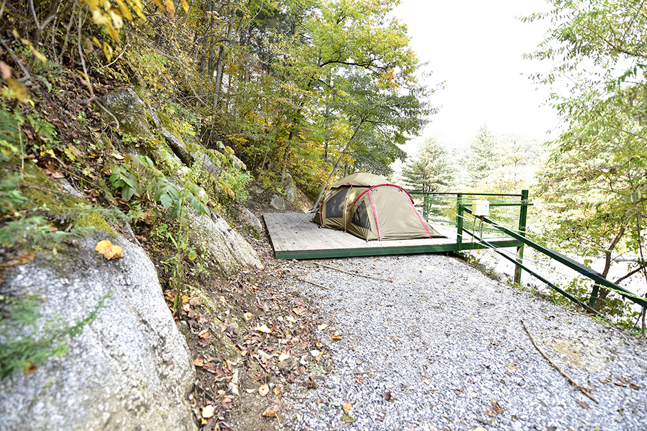 캠핑장은 과거 기도원과 연수원으로 쓰이던 건물을 활용하여 소나무 숲이 전체 공간을 에워싸고 있어서 시원한 산림욕장 같은 느낌을 준다. 사이트 50개는 계곡사이트, 냇가사이트, 그네 앞 사이트, 솔밭사이트, 숲속사이트, 반려견 존으로 구성되며 파쇄석이 기본적으로 깔려있고 사이즈 크기는 A사이트 8m×18로 넉넉한 사이즈다.