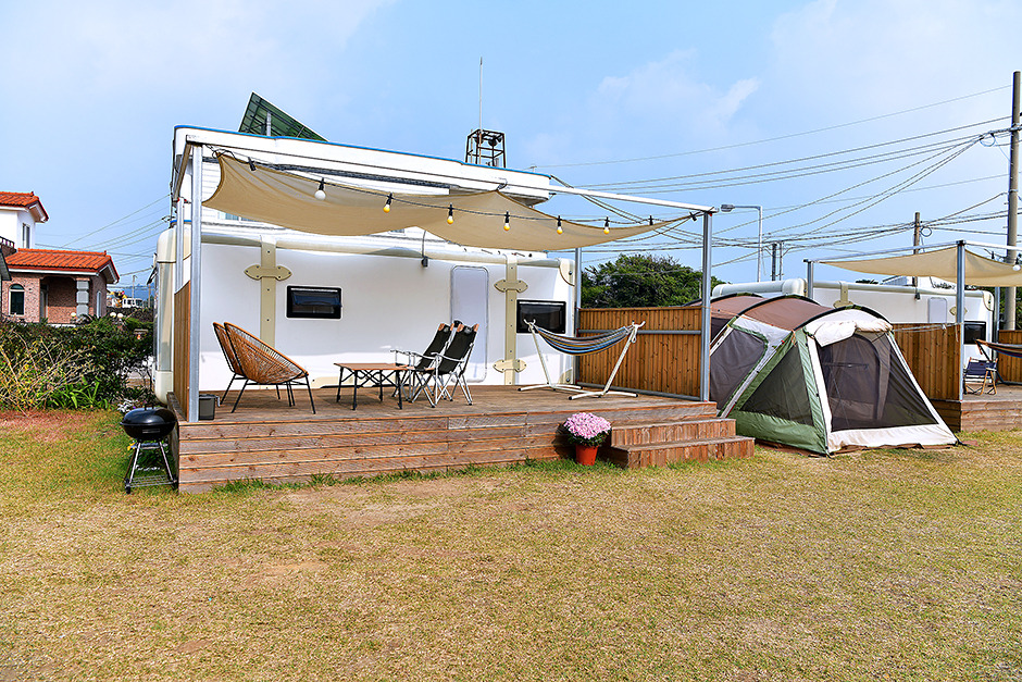 리썸카라반은 제주 서귀포시 대정읍에 자리한 소규모 카라반 캠핑장이다. 제주도 서쪽 일몰이 아름다운 조용한 바닷가 마을에 있으며, 도보로 1분 거리에는 제주의 광활한 바다를 누비는 남방 돌고래를 볼 수도 있다. 바닷가 근처의 평화로운 캠핑을 즐기고 싶은 여행객들에게 안성맞춤이다. 리썸 카라반 캠핑장에서 운영하는 카라반은 1호부터 5호까지 개별 데크가 있는 카라반이 있다. 내부에는 감성 콘셉트에 맞게 감성을 더하는 아기자기한 소품으로 꾸며져 있어 안락하고 기분 좋은 느낌을 더해준다. 내부에는 냉장고와 인덕션, 취사도구를 완비하고 있어 따로 번거로운 캠핑 준비물들을 챙길 필요 없다. 화장실과 샤워실 역시 카라반 내에 있어 프라이빗하게 캠핑을 즐길 수 있다. 넓은 앞마당처럼 펼쳐진 잔디밭과 개별 데크에서 편안하게 바비큐를 즐기며 휴식할 수 있다. 낮은 돌담과 정겨운 제주 시골 마을의 정취를 느껴보고 싶다면 이색 숙소로 추천하는 장소다.
