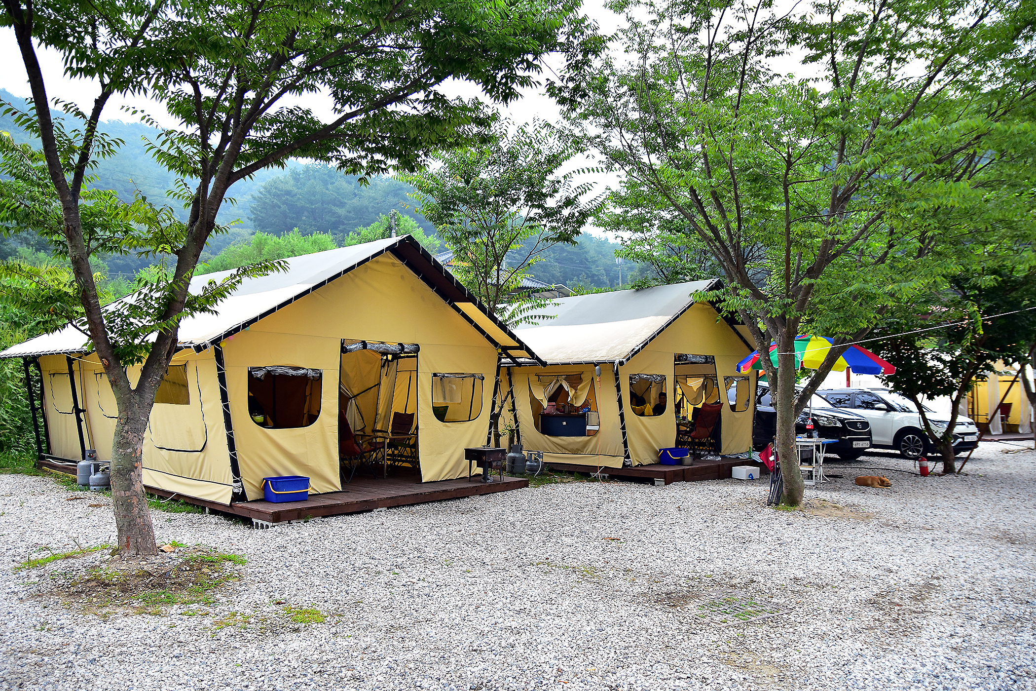 - 내용 : 전기, 무선인터넷, 장작판매, 온수, 트렘폴린, 놀이터, 산책로, 운동시설