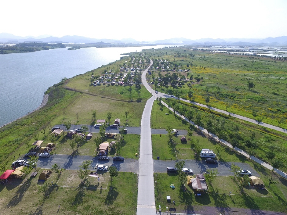 밀양시에서 관리하는 공영캠핑장으로, 낙동강 하류 드넓은 둔치에 있어서 조용하고 여유롭게 캠핑을 즐길 수 있다. 200개의 잔디 블록 사이트를 보유하고 있으며, 족구장, 다목적구장, 화장실, 샤워장, 개수대, 전기분전함이 있어 전기사용도 가능하다. 사이트 옆으로 주차를 할 수 있어 편리하며, 넓은 공간이 많아서 아이들이 인라인, 킥보드를 탈 수도 있다. 와이파이 및 CCTV도 보유하고 있어서 안전한 캠핑을 즐길 수 있으며, 연중오픈 캠핑장이다. 태양광 자전거를 대여해 인근의 낙동강자전거종주길에서 라이딩을 즐길 수도 있고, 반려견 동시입장도 가능하나 목줄은 필수이다. 환상적인 경치를 자랑하는 낙동강의 저녁노을과 몽환적인 분위기의 새벽안개 또한 캠핑장의 자랑거리이다.