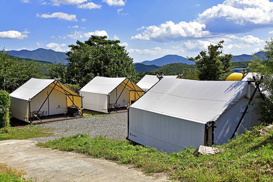 불스글램핑은 울창한 산 아래 자리 잡고 있어 맑은 공기와 푸르른 나무들을 항시 볼 수 있는 곳이다. 글램핑은 베드별 테마룸과 단체룸 등으로 나누어져 있으며, 외관부터 깔끔한 글램핑 내부시설은 작은 싱크대와 조리도구, 식탁, 침대, 에어컨, 전자레인지. 전기밥솥, 화장대, 드라이기, 아기자기한 소품들, 냉장고, TV, 탁자, 수건, 세면도구 등 모든 것이 세심하게 준비되어 있어 가볍게 몸만 가면 되는 곳이다. 또한, 개별 테라스가 있어 바비큐파티를 즐길 수 있다.