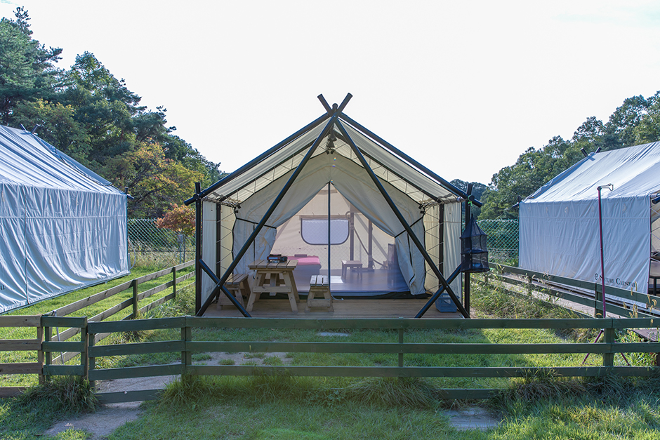 개차반캠핑장은 충북 괴산군 사리면에 자리하고 있다. 괴산군청을 기점으로 17Km가량 떨어져 있다. 자동차를 타고 임꺽정로, 중부로, 사담소매길을 차례로 거치면 닿는다. 도착까지 소요시간은 약 20분이다. 백마저수지와 보광산 사이에 마치 요새처럼 자리 잡은 이곳은 글램핑 3개 동과 일반야영장 8면을 마련했다. 또한 반려견캠핑장으로서 널찍한 잔디밭에는 반려견을 위한 시설이 즐비하다. 수영장과 작은 연못도 캠퍼와 반려견이 함께 어울리며 자연을 벗 삼아 휴식을 취하기 안성맞춤이다. 예약은 온라인 실시간으로 가능하며, 요금은 성인 2명과 반려견 2마리 기준으로 책정되어 있다. 참고로 캠핑장에 진입할 때 서행하지 않거나 음악을 크게 트는 차량 때문에 간혹 마을 주민의 민원이 제기되므로 주의할 필요가 있다.