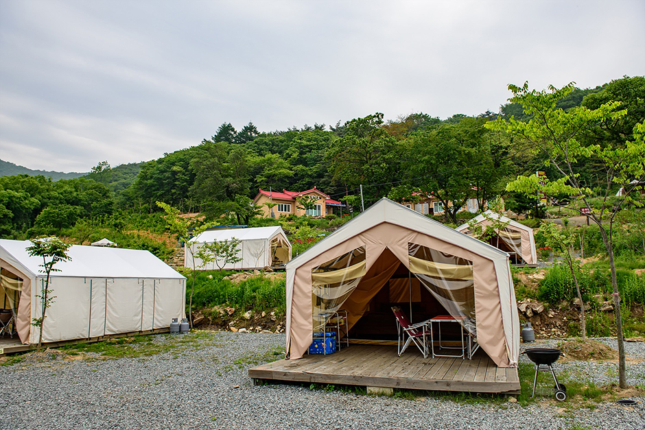 - 내용 : 전기, 무선인터넷, 장작판매, 온수, 트렘폴린, 물놀이장, 놀이터, 운동시설, 마트, 편의점