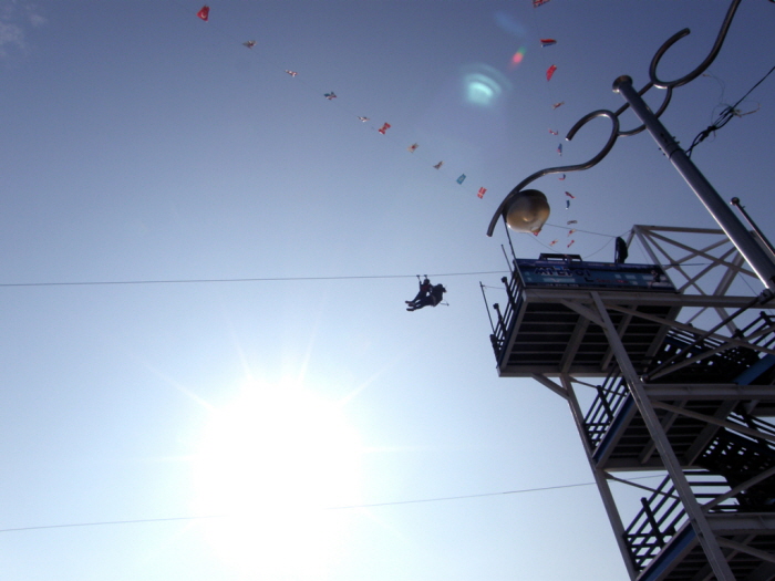 10m 높이에서 짜릿하게 출발하여 덕포해수욕장 위를 훨훨 날아 반대편 체험장에 도착하는 해상체험코스