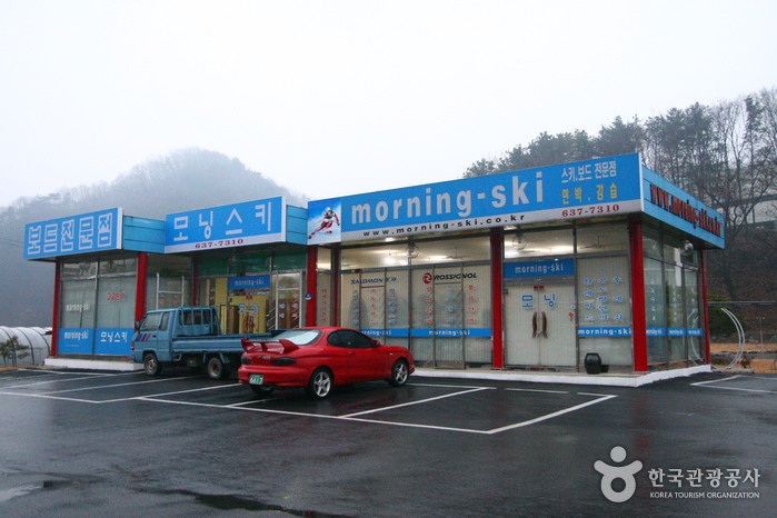 모닝스키는 직영 숙박시설인 죠이하우스와 식당이 있어 장비 렌탈과 숙박을 한번에 이용할 수 있어 편리하다.