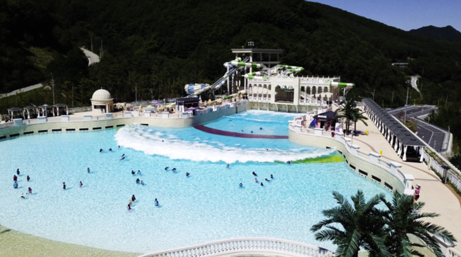 그리스로마 신화의 한 장면 같은 콘셉트의 이국적인 풍경에, 정선의 청정 계곡수를 옮겨 담은 물 좋은 워터파크이다. 구명조끼, 카바나, 썬베드, 데이베드를 대여하여 이용할 수 있다. 실내풀의 물 온도가 따뜻해서 아이들도 다양한 놀이시설과 함께 쏟아지는 물줄기를 맞으며 신나게 놀 수 있다. 흐르는 물에 몸을 맡기고 떠다닐 수 있는 둥둥리버, 어른도 아이도 함께 즐길 수 있는 노천탕, 튜브슬라이드 등 다양한 시설을 이용할 수 있다.