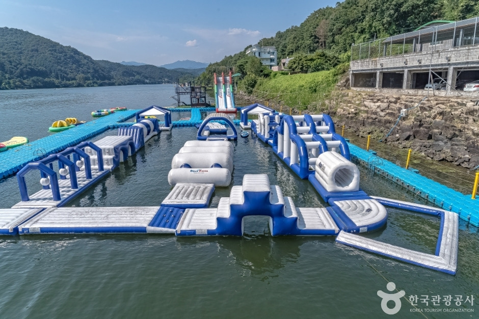 수상레저V는 가평역에서 차량으로 10분 거리에 위치해 있다. 대중교통을 이용해서 올 경우 가평역, 가평터미널, 굴봉산역에 픽업이 가능하다. 이 곳은 20여 종의 수상빠지, 놀이기구, 블롭점프, 더블레인 워터슬라이드를 갖춘 초대형 워터파크라 할 수 있다. 놀이 시설뿐 아니라 숙박이 가능하도록 펜션을 운영하고 있으며 워크샵 및 단체 행사를 위한 운동장과 잔디구장이 있어 개인에서 단체 방문객까지 수용 가능하다. 또한, 가평에 위치한 수상레저 시설 중 유일하게 지하 주차장을 보유하고 있으며 주차 스트레스가 없을 만큼 넓은 주차장 또한 매력적이다. 이외에도 숙박 패키지를 이용하는 방문객에게는 항아리 바베큐가 무한 제공되는 서비스도 있다. 시원한 강바람을 맞으며 그간의 스트레스를 풀기에 더할 나위 없이 만족스러운 장소이다.