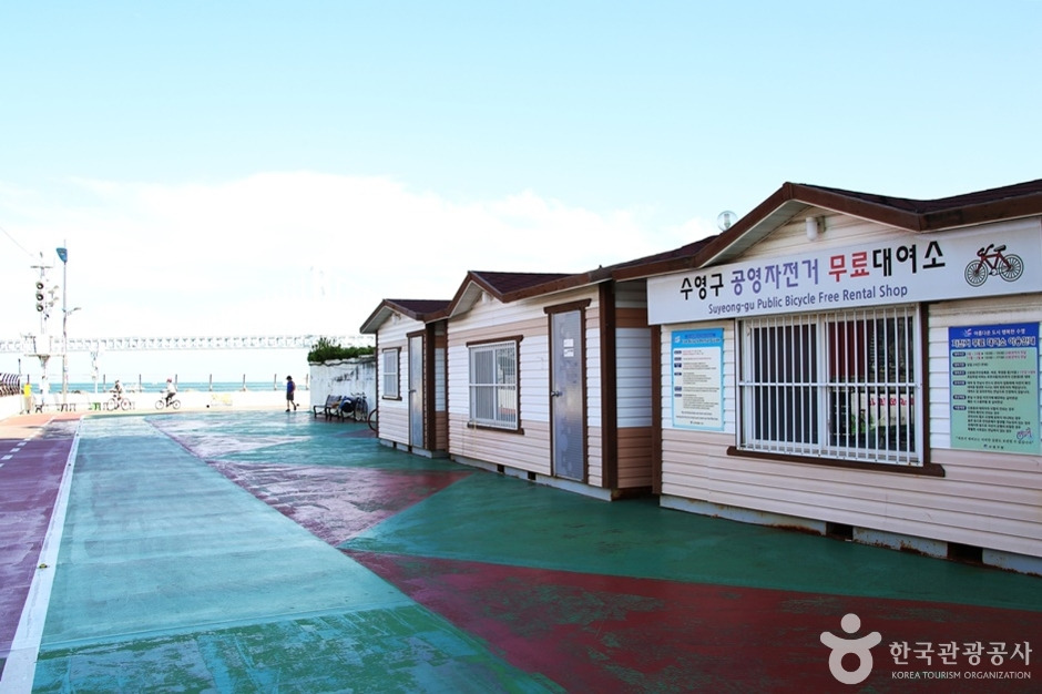 광안리 해수욕장 끝자락인 삼익비치타운 아파트 301동 뒤편 도롯가에 위치하고 있는 남천동 공영자전거 무료 대여소는 수영구청에서 운영한다. 지역 주민이 아니더라도 누구나 신분증만 있으면 2시간 한도 내에서 무료로 자전거와 보호장비를 대여받아 이용할 수 있다. 연중 대여소를 운영하며 계절별로 운영 시간이 조금 다르고, 종료 20분 전까지 반납해야 한다. 자전거를 타며 광안대교가 바라다보이는 광안리해수욕장 주변 자전거 도로에서 바닷바람을 맞으며 즐겁게 달릴 수 있다.