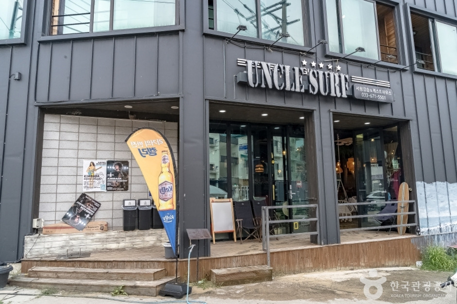 엉클서프 양양은 대한민국 서핑의 1번지 강원도 양양군에 있는 서핑강습소와 서핑샾을 함께 운영하는 곳이다. 1년 내내 서핑하기에 가장 좋은 파도가 들어오는 인구해변과 죽도해변 가운데 위치하여 초보자들도 서핑을 배우기에 좋다. 전체 2층 건물의 1층에는 서핑샾과 카페, 서핑 후 즐길 수 있는 펍이 있고, 2층에는 게스트하우스가 운영되고 있어, 한 곳에서 서핑과 편안한 숙박을 함께 즐길 수 있다. 다년간의 서핑 경력을 쌓아온 우수한 강사진들은 실전 서핑을 위해 강습회원들에게 서핑 전에 사전 교육을 실시하여 안전하고 즐겁게 서핑을 즐길 수 있도록 철저한 준비 과정을 거친다. 인구해변에서 진행되는 엉클서프 수업은 서핑보드가 이미 해변에 준비되어 있어 무거운 서핑보드를 들고 이동할 필요가 없다는 것이 큰 장점이다. 서핑을 처음 시작하는 초보자부터 숙련자까지 모두 참여할 수 있으며 강사진들이 친절하게 지도해 준다. 또한 강습 중에 멋진 추억을 남길만한 사진 촬영과 드론 영상 촬영도 준비되어 있어 강습 후 서핑하는 자신의 모습을 카페에서 다운로드받아 보관할 수 있다.