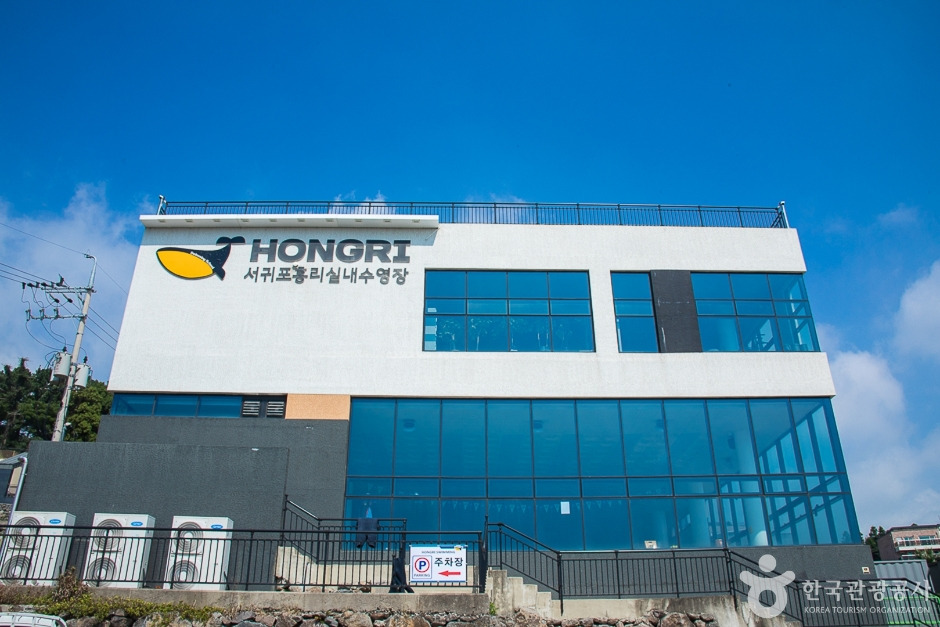 제주도 서귀포홍리실내수영장은 2020년에 개장한 서귀포시 대표 수영전문교육기관이다. 친환경해수풀의 첨단 수질관리 여과시스템을 도입하고, 수영장 내 데크 난방 설치와 30도 이상 물온도를 유지하여 사계절 따뜻하게 수영을 즐길 수 있다. 1층 언덕에 있어서 통창으로 서귀포를 내려다보는 뷰가 아주 멋지다.