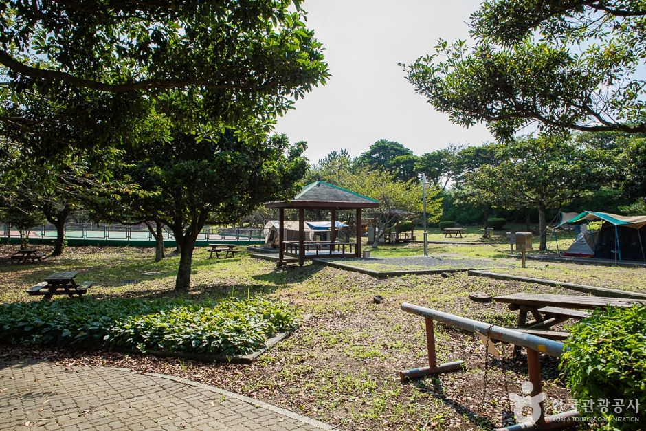 봄에는 벚꽃이 피고, 겨울에는 동백꽃이 피어 더욱 아름다운 캠핑장이 되며, 아이들과 함께 온 가족들은 부모가 텐트를 치는 동안 아이들이 놀이터에서 신나게 뛰어노는 시간을 보낼 수도 있다. 또 하나의 재미는 야영장에서 조금만 올라가면 모구리오름을 볼 수 있다는 것이다. 모구리오름은 바로 옆에 알과 비슷한 형태의 작은 오름이 있어서 마치 어미 오름이 품고 있는 모습과 같다고 한다. 그래서 한자 어미 모자를 따서 모구리오름이라 불리고 있다. 왕복 30분 정도의 아이들도 걸을 수 있는 쉬운 산책로이다. 날씨가 좋으면 오름 정상에서는 다랑쉬오름, 용눈이오름까지 보인다. 모구리오름 탐방로를 따라가다 보면 편백나무숲에서 싱그런 향기를 맡으며 힐링하는 시간을 즐겨 볼 수 있다. 관광지 성읍민속마을 바로 위쪽에 있고 백양이오름, 다랑쉬 오름이 있어 이곳에서 야영하면서 동쪽으로 여행하면 좋다.