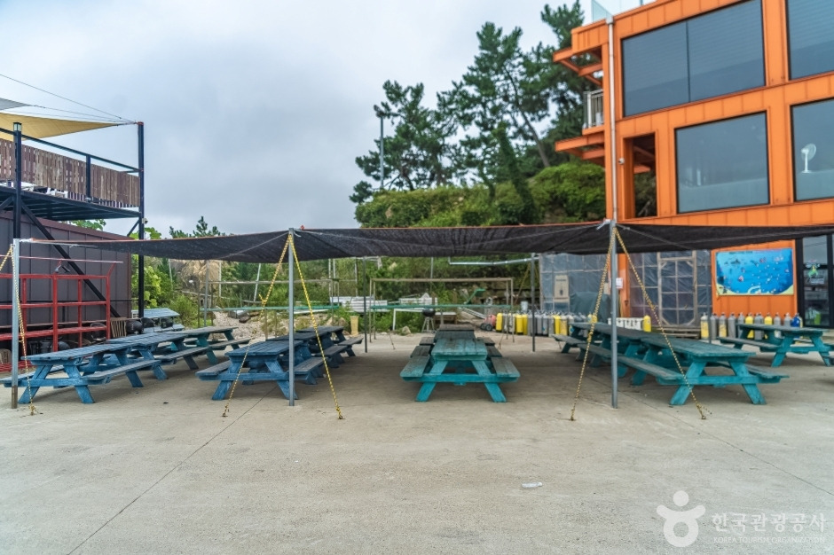 천학정다이브리조트는 강원도 청정지역의 맑고 깨끗한 수중환경을 편안하고 쾌적하게 다이버를 위한 휴식공간을 제공한다. 초보 교육부터 펀다이버까지 다양한 수심의 바다환경을 경험할 수 있는 많은 다이브포인트가 있다. 숙소와 식당, 샤워 등 편의시설이 구비되어 있고 교암포구 쪽에 천학정 본진이라 불리는 배를 타고 다이빙 세팅을 위한 장소가 있다. 천학정 본진에는 탈의실은 있지만 실내 샤워장이 아닌 실외 샤워기가 설치되어 있어 다이빙 후 바닷물을 제거하는 정도로 사용할 수 있다. 가장 대표적인 포인트는 울산바위와 금강산 포인트이다. 특히 볼락 떼들이 득실득실 거리는 울산바위는 큰 협곡이 멋있어서 다이버들에게 가장 유명하다. 보통 울산바위~사각어초~금강산포인트의 순서로 다이빙을 한다. 금강산 포인트는 돌들이 진짜 금강산을 보는 것처럼 웅장하고 멋있다. 특히 수심대가 낮은 곳이 있으면서 깊은 곳도 있어서 다린이부터 텍 다이버들까지 모두 만족할 수 있는 포인트다.