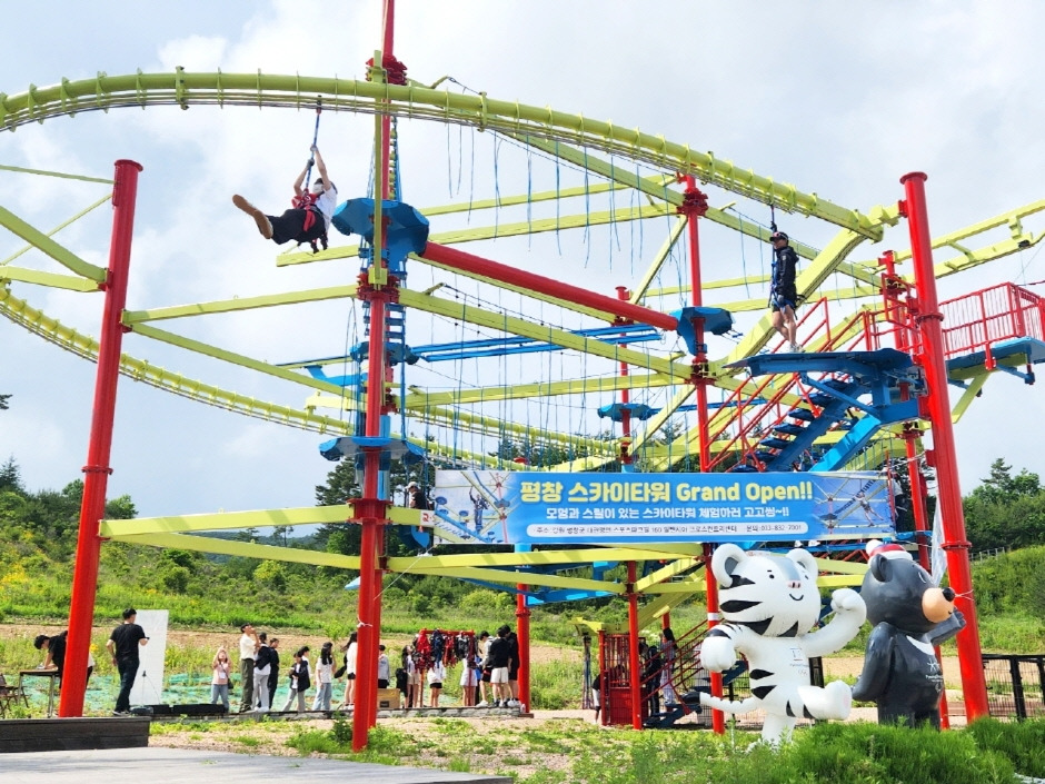 평창군 알펜시아 스키점프 센터 인근에 위치한 스카이 타워 체험시설은 다층형 복합 로프코스 구성의 어드벤처 체험시설이다. 연면적 1,200㎡, 지상 3층 규모에 총 14개 로프코스와 자유낙하시설, 곡선형 집라인 시설로 체험코스가 구성되어 있다. 또한, 연계 체험프로그램으로 크로스컨트리 체험과 바이애슬론 체험 등도 준비되어 있다.