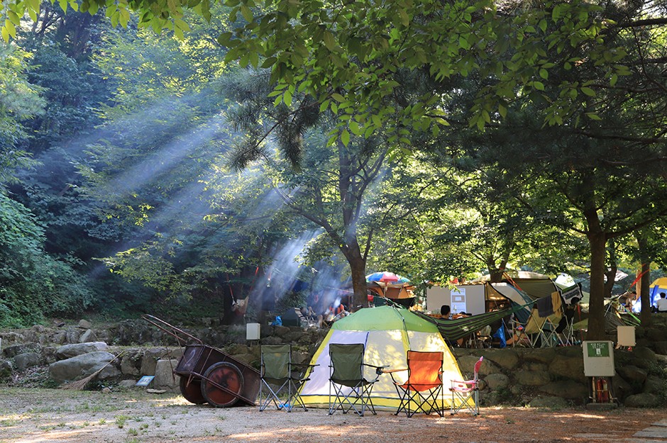 넓은 잔디밭 광장이 있는 용문산관광지 야영장은 경기도 양평군에 위치하고 있다. 14개 노지 사이트를 운영하고 있으며 일부는 노키즈 존으로 운영하고 있다. 주변 관광지로 용문사, 청춘뮤지엄, 용문산계곡 등이 있다.