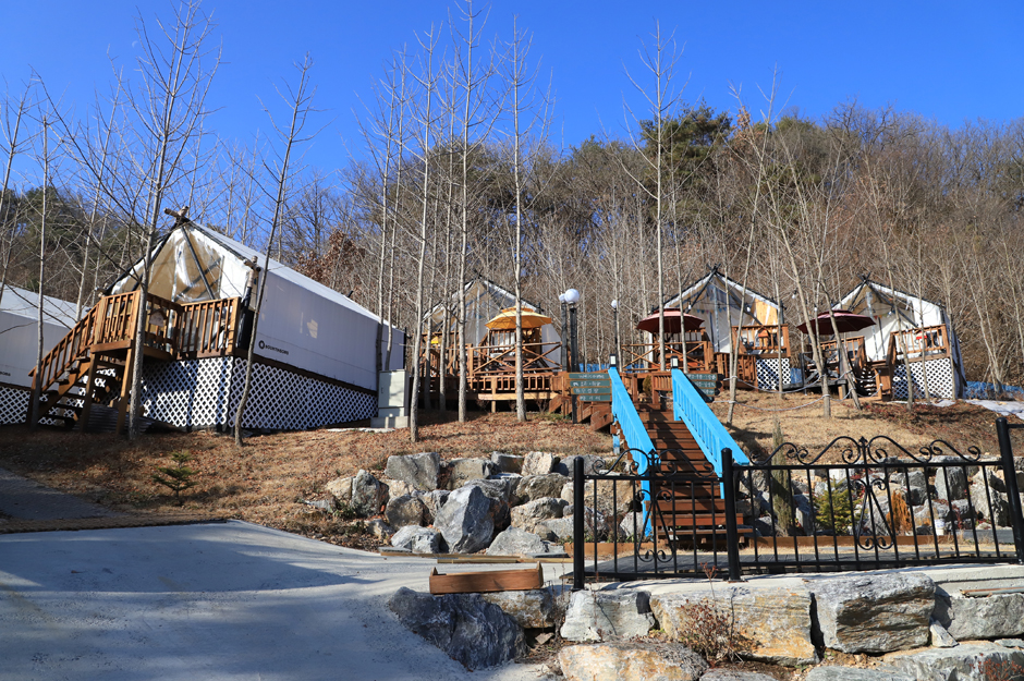 YELLOW HILL 글램칭장은 강원도 춘천시 동산면에 위치하고 있다. 빼곡히 들어찬 노란 은행나무가 이곳을 찾는 이들의 힐링 공간이 되어주고 있다. 캠지기가 직접 생각하고 만들어온 글램핑장이다.