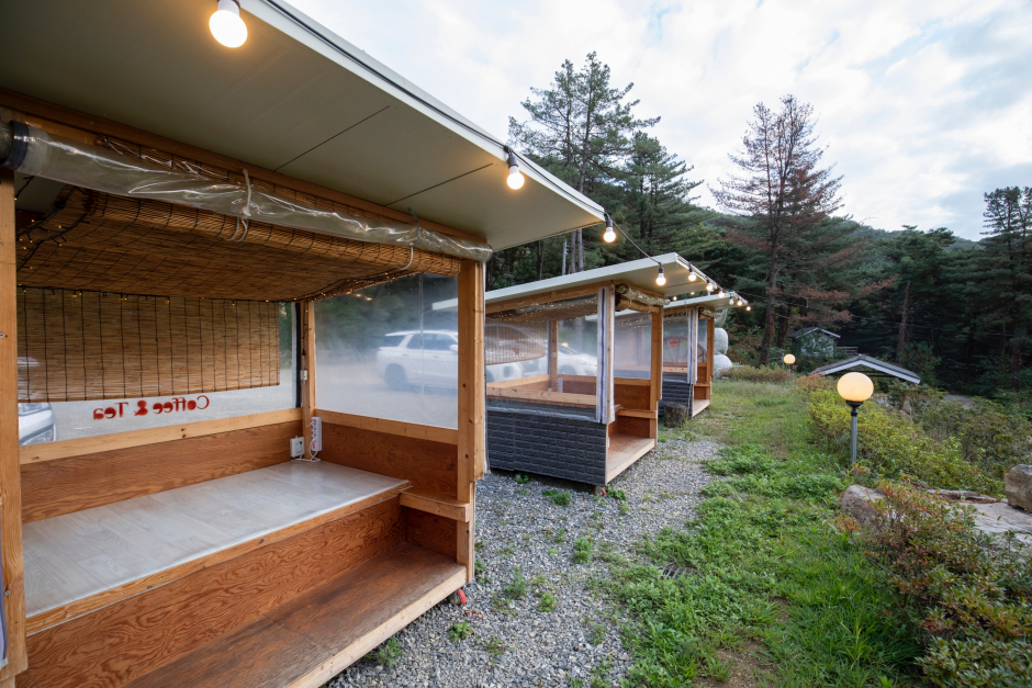 사이트는 7m x 4m이며, 파쇄석으로 되어 있으며, 부대시설로는 개수대와 화장실, 샤워실이 깨끗하게 운영되고 있다. 개수대는 야외에 설치되어 있지만, 온수가 잘 나오기 때문에 걱정할 필요는 없다. 캠핑장 곳곳에 전구가 많이 설치되어 있어 밤에도 어둡지 않고 캠핑장의 감성 분위기를 더해준다. 높낮이가 다른 비탈을 따라 사이트가 자리하고 있어 사이트마다 색다른 분위기의 캠핑을 즐길 수 있다.