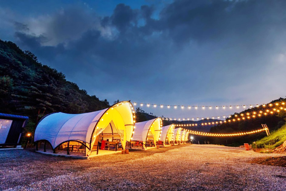 객실 유형은 친구끼리 이용하기 좋은 트윈 텐트와 연인끼리 이용하기 좋은 싱글 텐트, 프라이빗하게 캠핑을 즐기기 좋은 럭셔리 신축 카라반이 있다. 특히 카라반 객실은 하나의 독립적인 공간으로, 미니 개수대와 냉장고 등이 마련돼 있으며 카라반 앞에 개별로 분리된 바비큐장을 이용할 수 있다. 무한 바비큐 세트에는 국내산 1등급 돼지고기는 물론, 즉석밥과 라면, 새우, 소시지, 마시멜로, 된장찌개 등 캠핑에서 맛볼 수 있는 푸짐한 메뉴들을 모두 포함하고 있다.