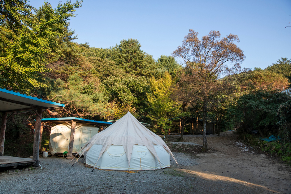그늘이 있는 나무 데크존과 일반 나무 데크존이 있다. 나무 데크는 3m x 3m 크기의 사이트로 구성돼 있다. 조금 더 넓은 사이트를 이용하고 싶다면 파쇄석 사이트를 예약하면 된다. 파쇄석 존은 한 가족이 이용할 수 있는 7mx5m와 두 가족이 이용할 수 있는 12mx8m로 구성돼 있어 여러 명이 넓게 이용하기 좋다. 여름에는 수영장을 운영하며 계곡이 바로 옆에 있어 여름철 피서지로도 제격이다.