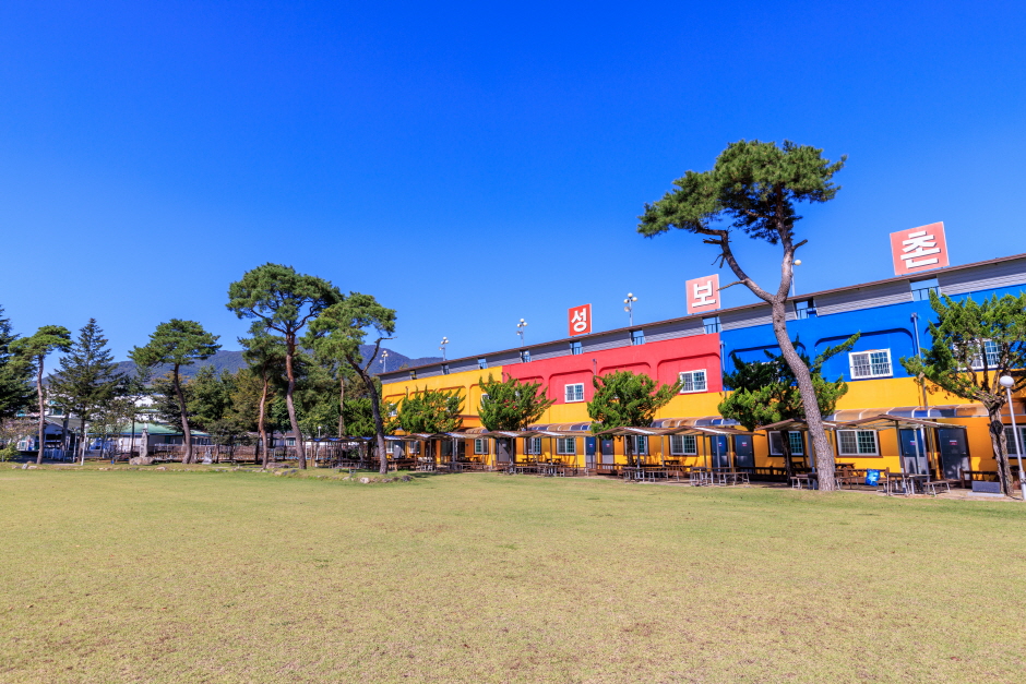 - 내용 : 전기,무선인터넷,장작판매,온수,트램폴린,물놀이장,놀이터,산책로,운동장,운동시설,마트, 편의점,유스호스텔, 음식점, 전시장